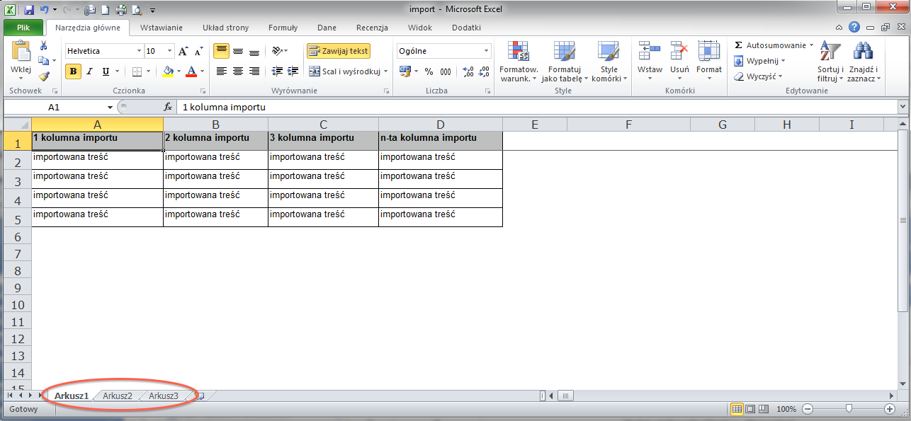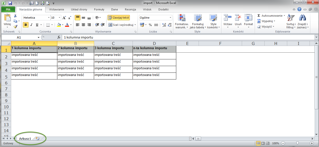 Prawidłowy plik z jednym arkuszem: